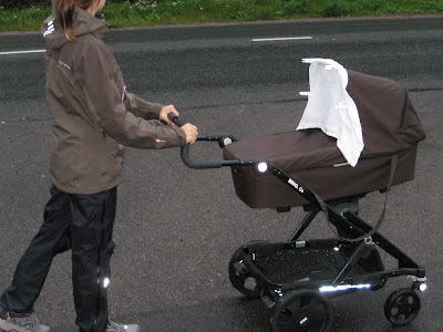 Kierrämme tunnin lenkin ja poika ehtii ottaa iltaunet samalla.